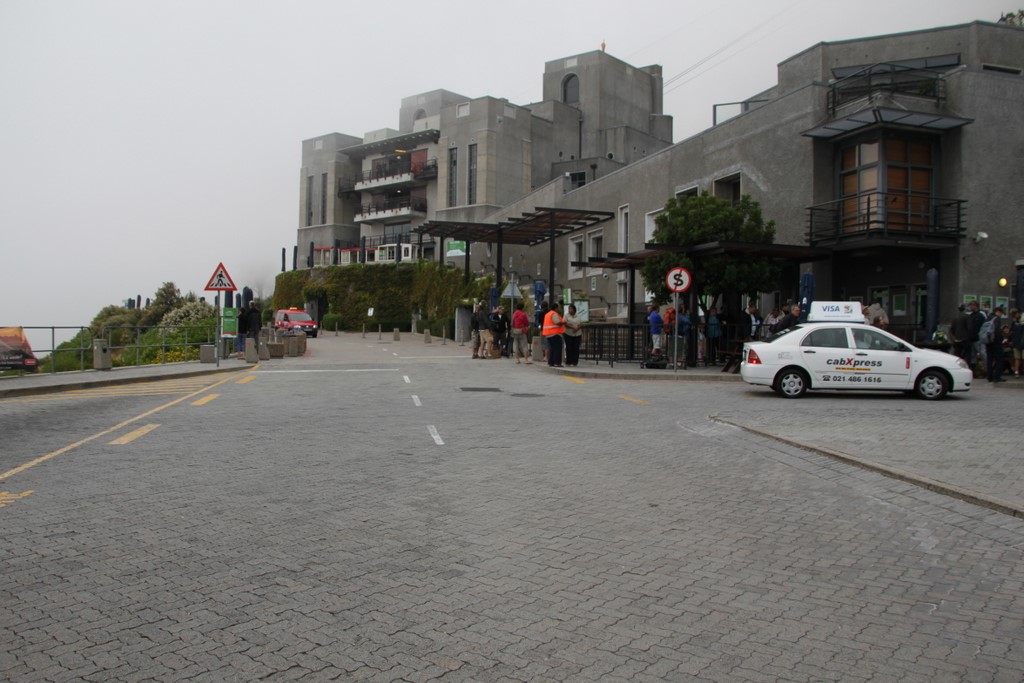 因为游览桌山的游客可能会很多,因此领队要我们早上七点半就出发前往桌山。我们驱车很快就到达了桌山,桌山的入口处的确没什么人,可惜天公不作美,山上云雾缭绕,能见度很低,于是领队决定晚两个小时后再去爬。